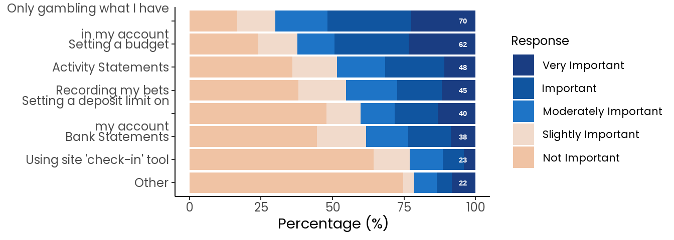 Please indicate how useful the following are in supporting you to track your gambling spending: