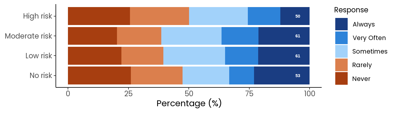 master_dataset <- master_dataset_initial %>%as_tibble() %>%filter(SURVEY_STATUS_PGSI =="Complete") %>%filter(PAS_6M_BET_FREQ_DAYS !=0) %>%# Remove anybody who didn't bet in the window of interestfilter( (ATTENTION_CHECK_1 =="PASSED"|is.na(ATTENTION_CHECK_1)) & (ATTENTION_CHECK_2 =="PASSED"|is.na(ATTENTION_CHECK_2)) ) %>%mutate(GHM_OVER_PRIORITISE =as.numeric(GHM_OVER_PRIORITISE),GHM_STRAIN =as.numeric(GHM_STRAIN),GHM_SEVERE =as.numeric(GHM_SEVERE) ) %>%# Enforce the order of factors so that they present properly in tables and graphs:mutate(PGSI_CATEGORY =factor(PGSI_CATEGORY, levels =c('No risk','Low risk','Moderate risk','High risk')))